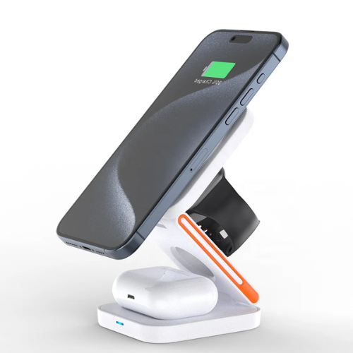 Universal Compatibility No more searching for multiple chargers for different devices! Our 3-in-1 Wireless Charging Station is universally compatible with all your gadgets, from mobile phones and tablets to smartwatches and wireless earbuds. Whether you're at home, in the office, or on the go, this charger is your perfect travel companion.
